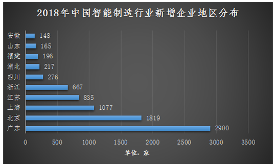 中國智能制造企業(yè)在地域分布方面存在明顯差異,普遍分布在一線城市,廣東省以絕對優(yōu)勢領(lǐng)跑市場。